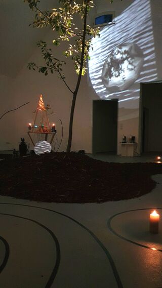 Eine installative Meditation über künstlerische Praxis in Auseinandersetzung mit Zen-Philosophie, Quantenphysik und dem Nachsinnen über Raum und Zeit.
